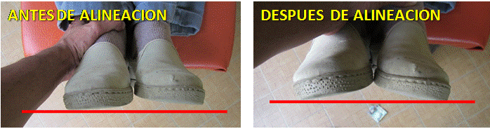Acto seguido, con el paciente boca arriba, se compara la longitud de las piernas, notando por lo general, un acortamiento, este efecto es proporcional al grado de estrés de la persona. Al finalizar la sesión, se logra que los pies queden parejos, en éste estado comienzan a desaparecer sintomas como el dolor en las rodillas, pues las cargas se balancean para ambas piernas.